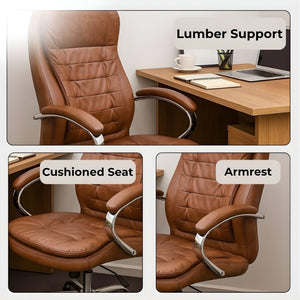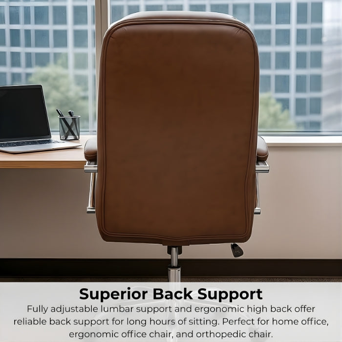 SULSHA Brown PU Leather Office Chair, Ergonomic High-Back Desk Chair with Lumbar Support, Adjustable Height, Recline & Tilt, Swivel Computer & Gaming Chair for Home Office